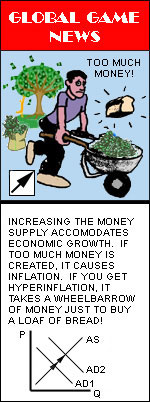 In The Global Economics Game each player is in charge of a country's economy. They are the chief economic advisers to the president, the congress, and the central bank of their countries. The object of the game is to be the best at selecting economic policies to maintain full employment, low inflation, and economic growth without excessive pollution.